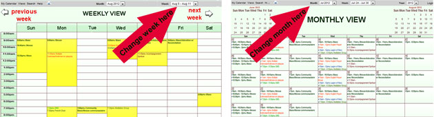 - Click on the left arrow to go to a previous day, week or month and on the right arrow for the next day, week or month. Alternatively, go to My Calendar on the top left to change views.